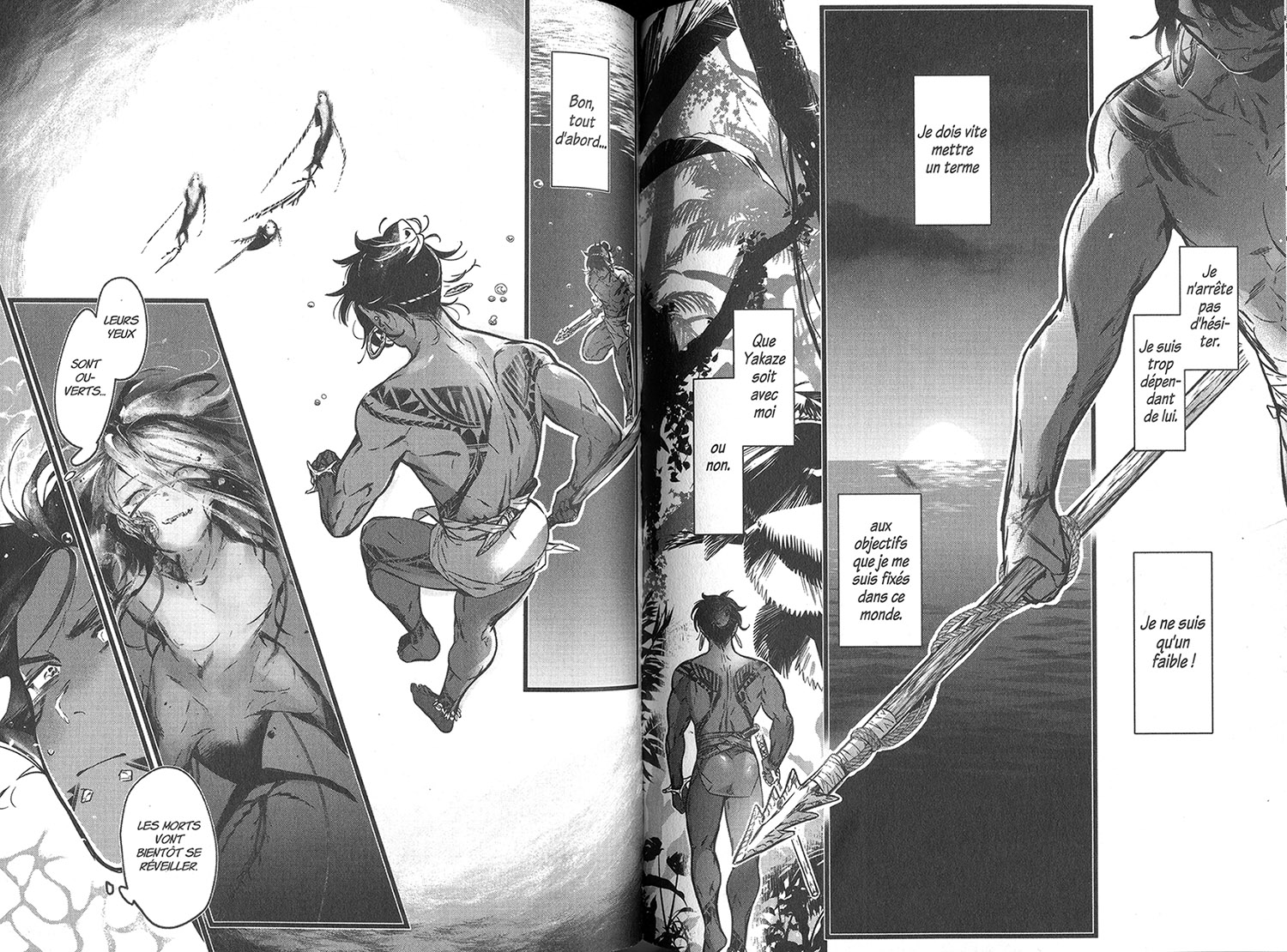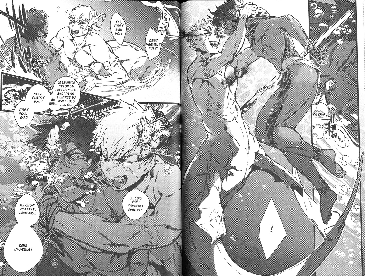 Olin tosi innoissani tämän tarinan maailmasta. Wakashion valloittajaheimo ihannoi voimaa ja miehisyyttä ja ilmaisee asemaa heimossa päheillä tatuoinneilla ympäri kehoa ja etenkin poskiin tehtävillä hainhammaskuvioilla. Rakastavaiset kohtaavat salaa tuhottujen heimojen kiroamassa luolapoukamassa, ja kirous paljastuu todeksi, kun Yakazen ruumis viskataan poukamaan ja hän muuttuu synkäksi vetten hirviöksi. Toisaalta vetten syvyyksistä löytyy tuhotun heimon kostonhimoisia sieluja, jotka ovat jääneet kiikkiin kauas kotoa.